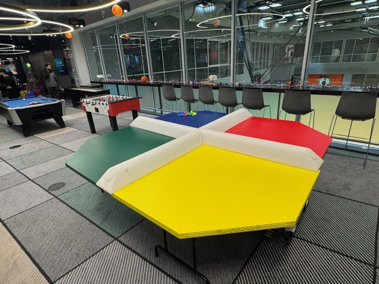 1Get ready for the most exciting twist on table tennis you’ll ever play, Poly Pong! This fast-paced game can accommodate anywhere from two players to four players at once, making it perfect for group events and friendly competition.