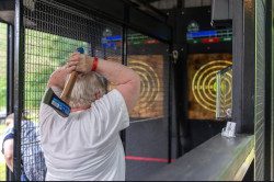 1Enter survival mode with The Great Midway Axe Shack: Zombie Hunter, the thrilling mobile axe-throwing experience that combines cutting-edge technology with undead excitement! Players hurl real axes at moving zombie targets projected onto the board, creating an immersive, arcade-style showdown. Featuring smart scoring, real-time hit detection, and eerie lighting effects, Zombie Hunter delivers non-stop fun and friendly competition. Ideal for Halloween events, festivals, corporate gatherings, and college parties, this high-energy attraction brings the perfect mix of fright and delight to any event.
