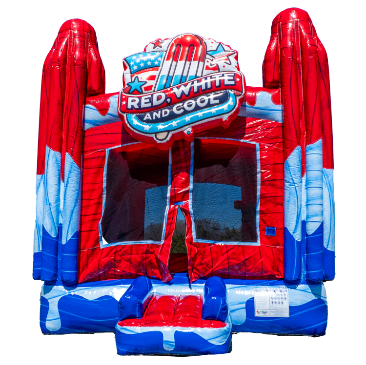 1Turn your party into a star-spangled celebration with our Red, White & Cool Bounce House! Drenched in bold patriotic colors and topped with a festive “Red, White & Cool” banner, this inflatable is an instant eye-catcher and a total kid magnet. Guests can jump, bounce, and burn off energy in a bright, open play space that’s perfect for all-day fun.